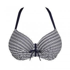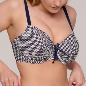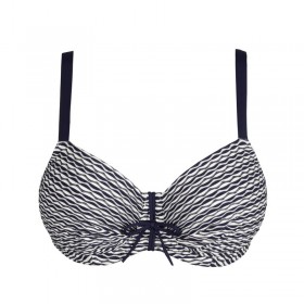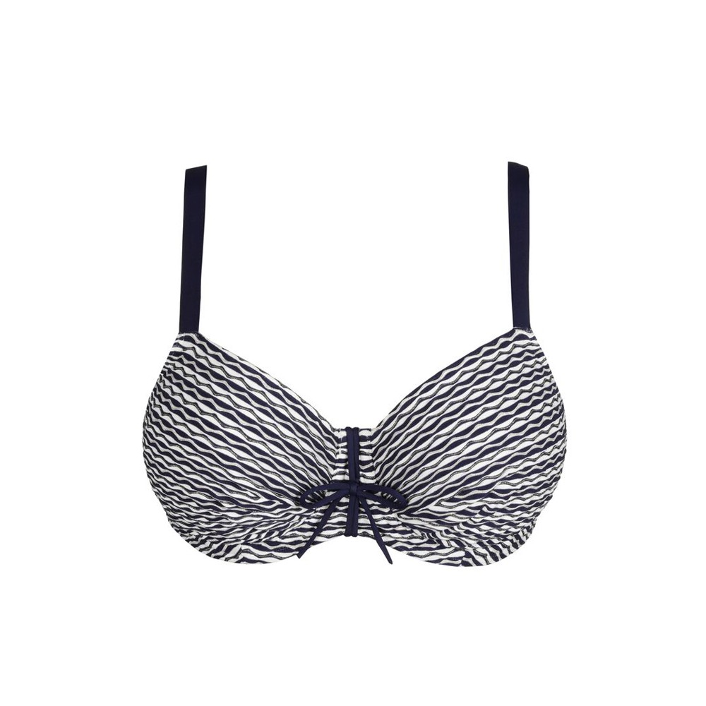 Bikini top from the Kalba collection by PrimaDonna Swim, full cups that confidently enhance your bust. Water Blue! Flattering navy blue stripes with vintage inspiration, timeless pattern, a must-have color in any beach wardrobe.